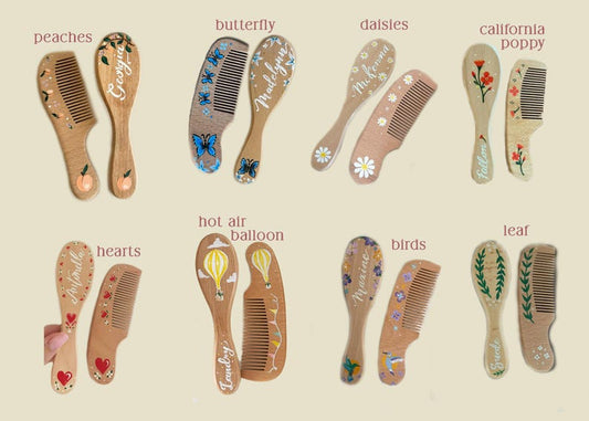 Birds Baby Hairbrush + Comb, Hand-Painted, Birthday, Christmas, Baby Shower Gift