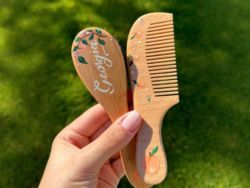 Hand-painted baby hairbrush and comb, great as a keepsake or a gift! ** only painted...