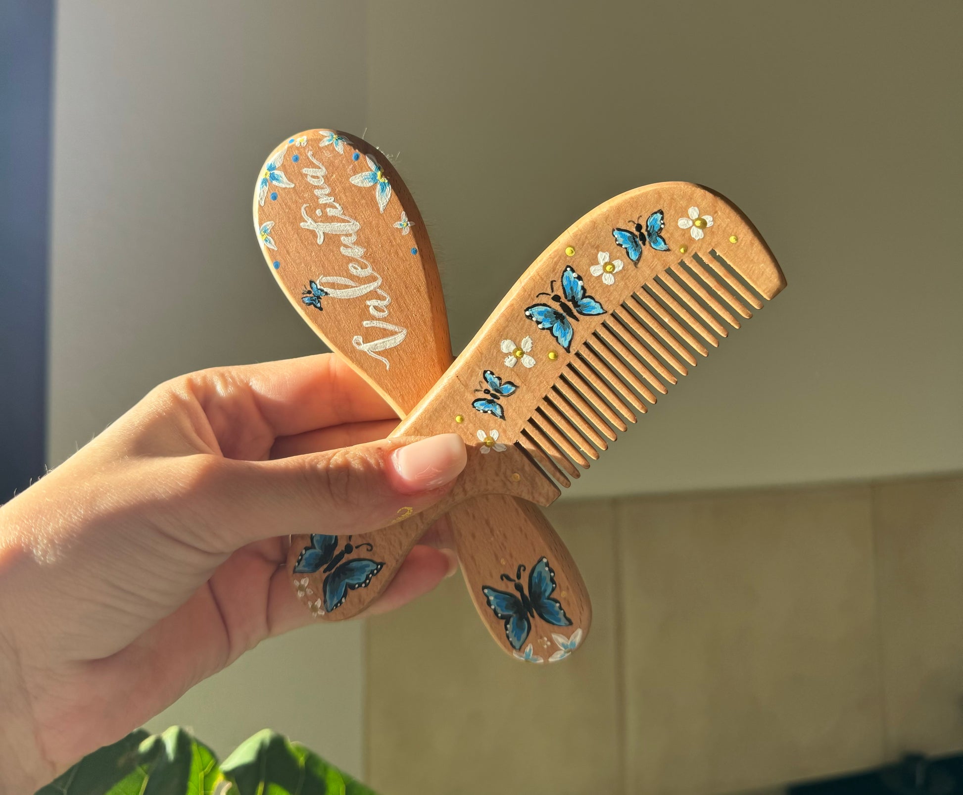 Hand-painted baby hairbrush and comb without a name, great as a keepsake or a gift!