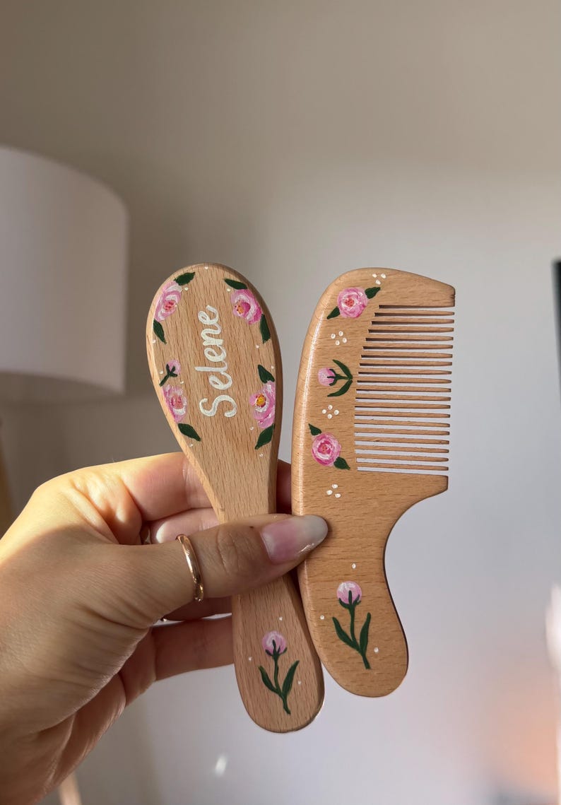 Hand-painted baby hairbrush and comb, great as a keepsake or a gift!